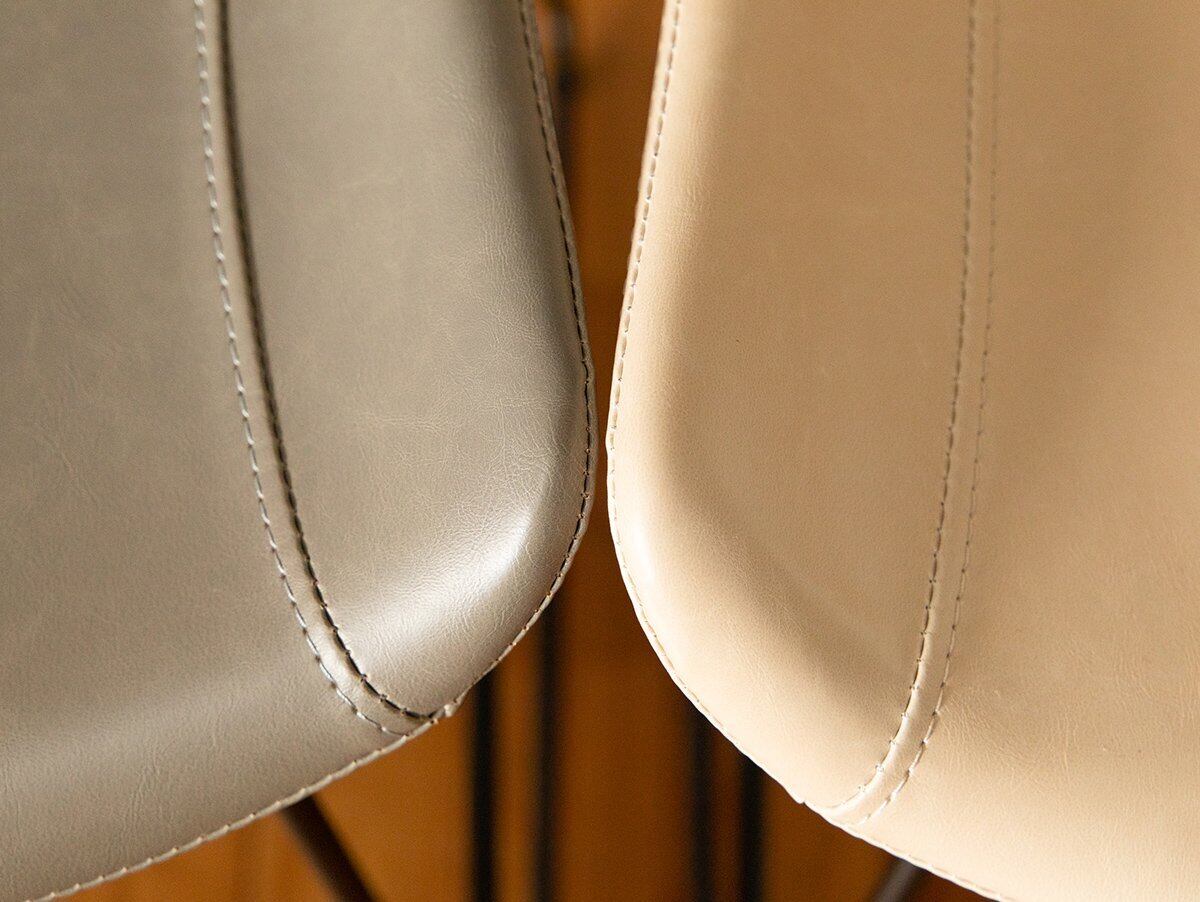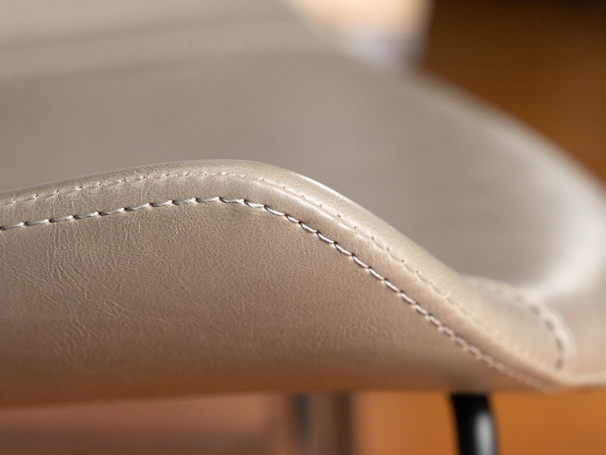 座面にはクッション性を持たせ、張地は耐水性に優れた合皮を採用。飲み物をこぼしても固く絞った布巾でさっと拭き取れるため、日常のメンテナンスも簡単です。