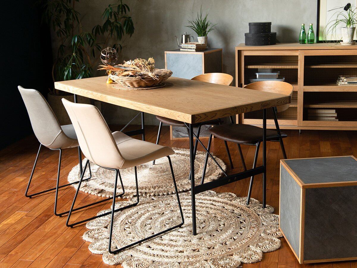 レザーの風合いとスチールのモダンな質感が絶妙に調和し、モダン・ヴィンテージ・ナチュラルなど、さまざまなインテリアに溶け込みます。