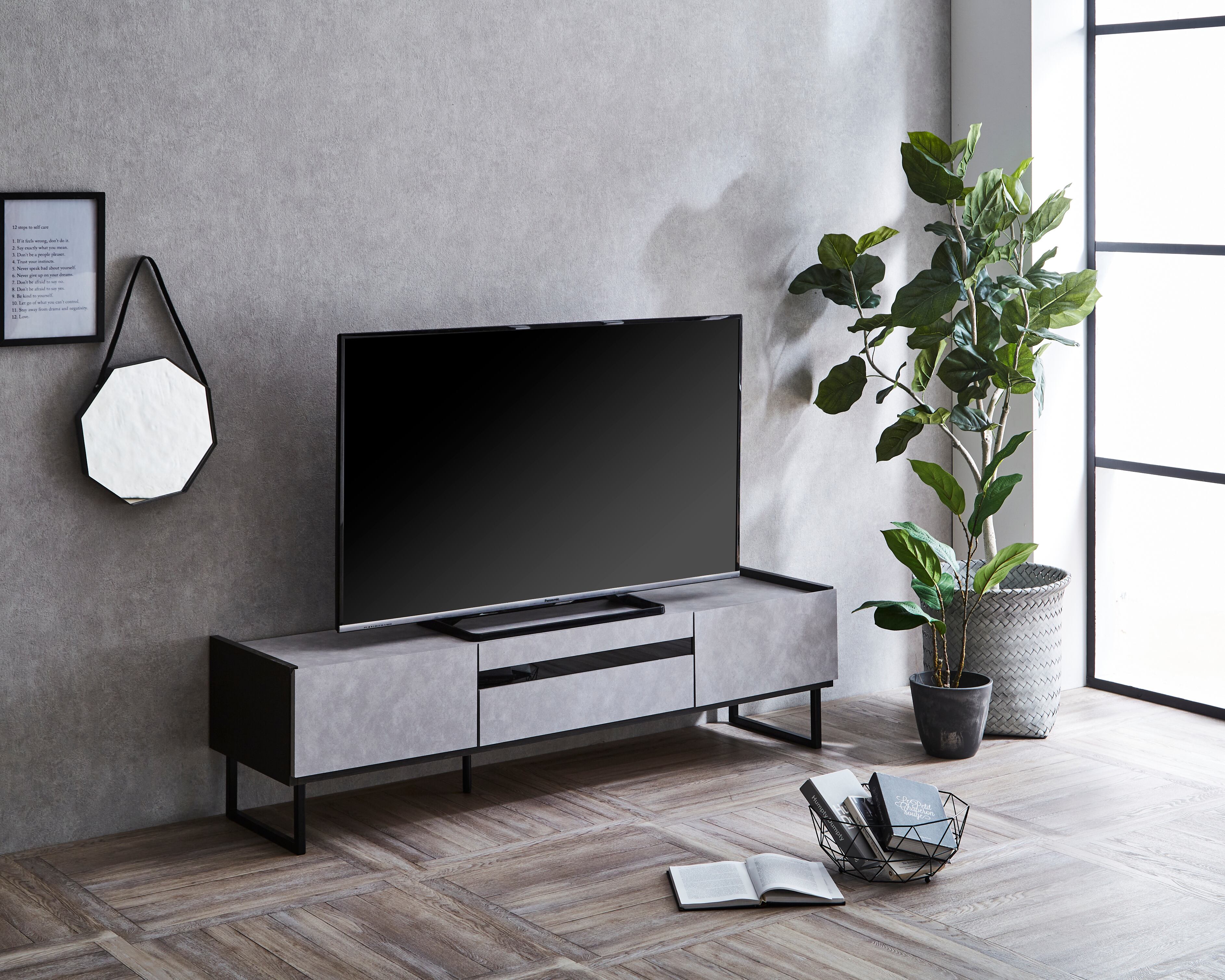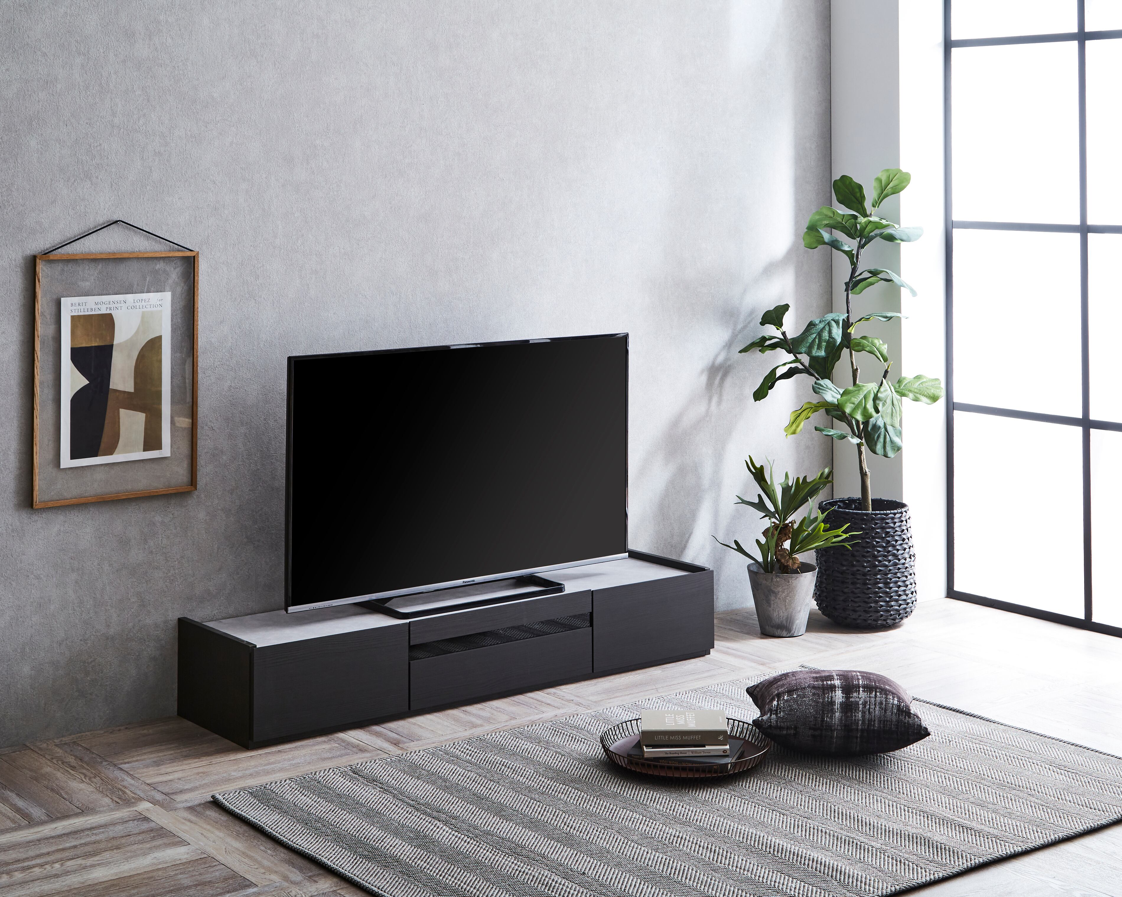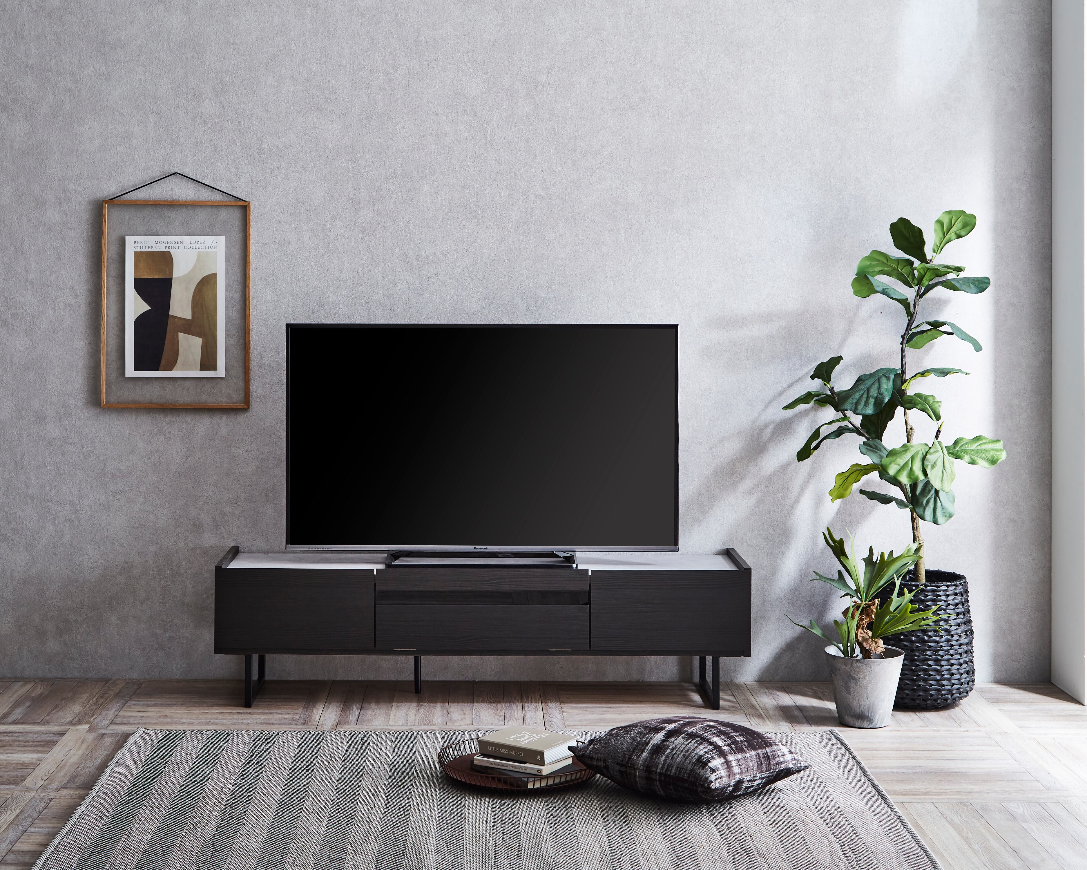 洗練されたデザインが魅力の「ステラ TVボード」。ブラックとグレーのシンプルなカラーが、どんなインテリアスタイルにもマッチし、リビングにスタイリッシュな雰囲気を提供します。機能性と美しさを兼ね備えた一品です。